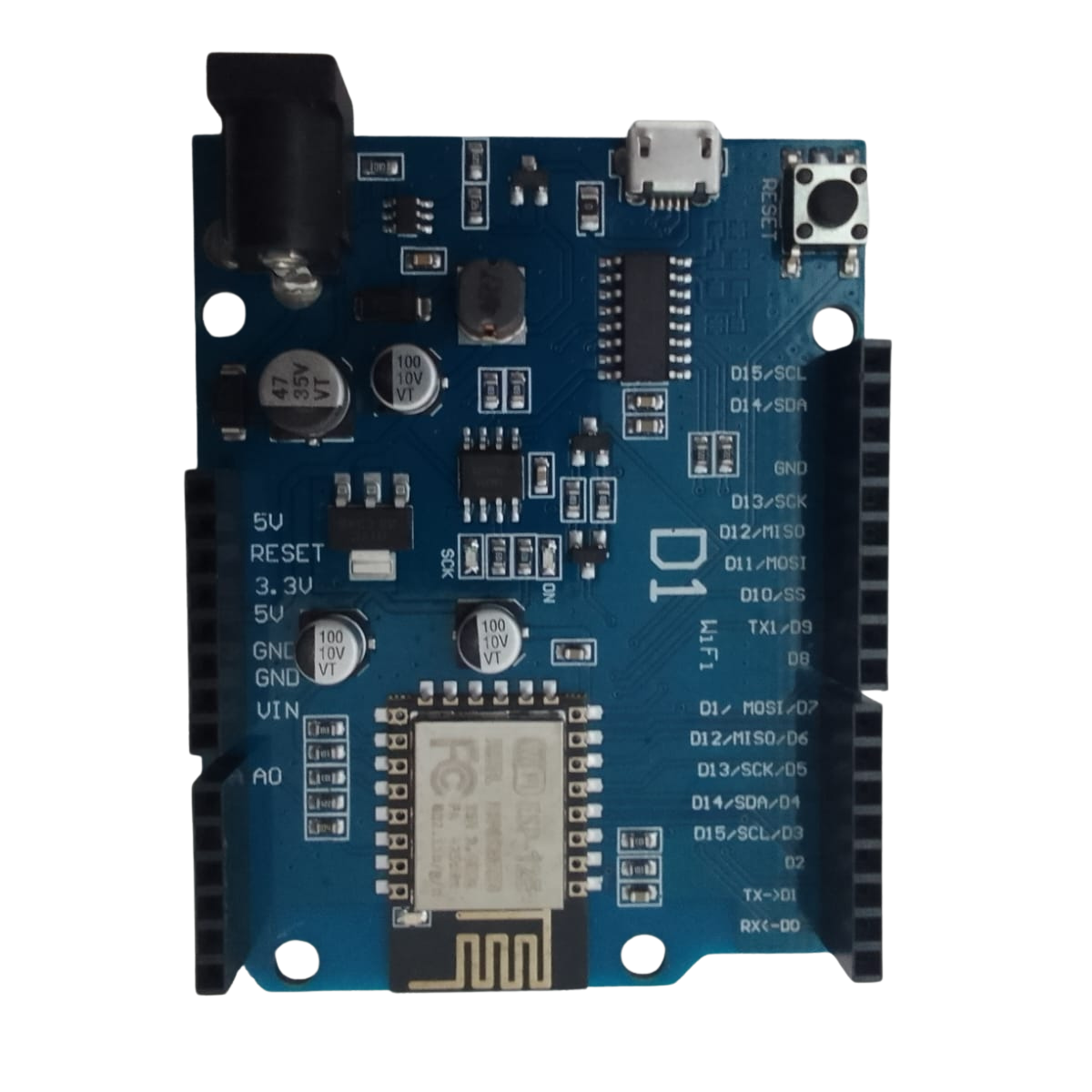 O Módulo Wifi D1 R2 é um microcontrolador de baixo custo projetado juntamente com o módulo ESP8266 Wifi para conexão com a rede. Este módulo tem compatibilidade com Arduino Uno, apresentando algumas características semelhantes ao Arduino. Ele é ideal para o desenvolvimento de projetos IoT (Internet das Coisas) o qual permite que a programação seja feita diretamente na IDE do Arduino, além de já possuir entrada micro USB para conexão ao computador.
